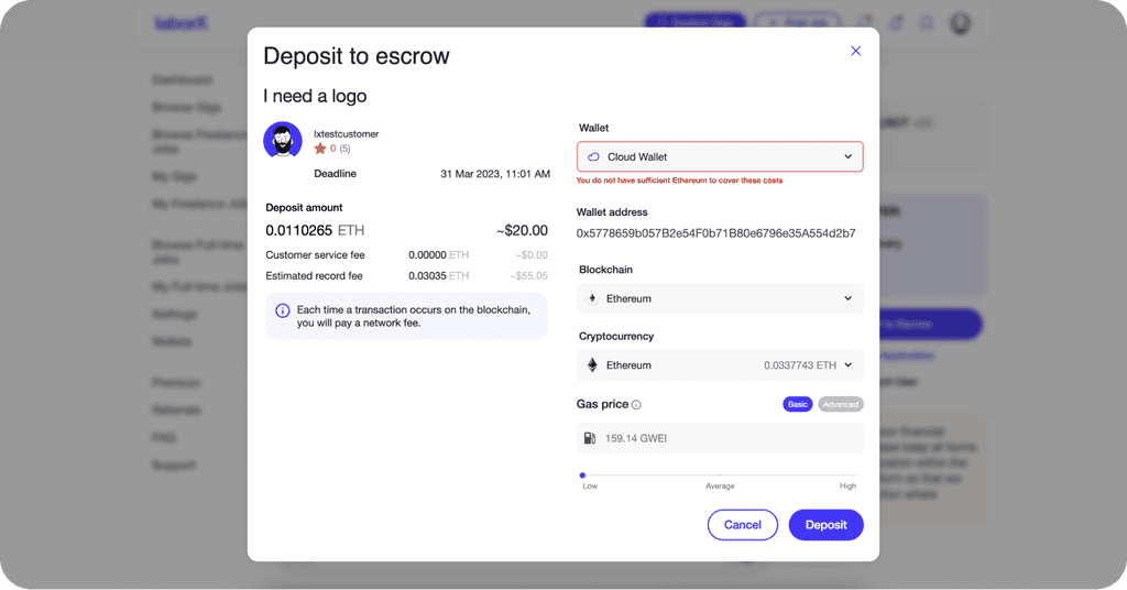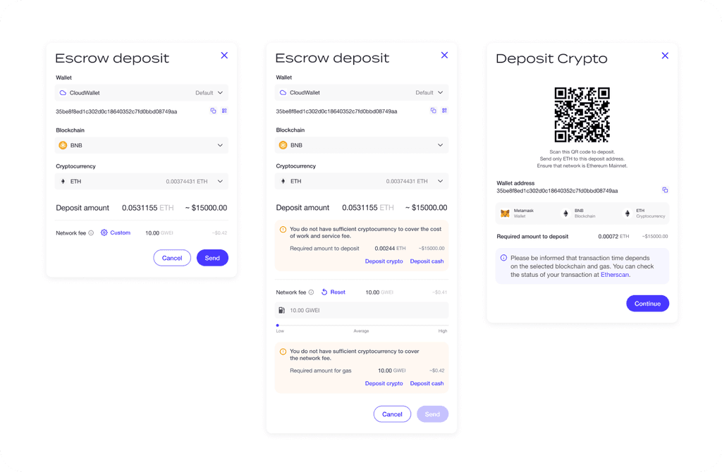 5. The key update is the addition of a new wallet connection. We also removed two columns, introduced the ability to fund the deposit wallet with both cash and crypto, and implemented detailed error messages specifying the exact amount of crypto requires for the task and for the commission.