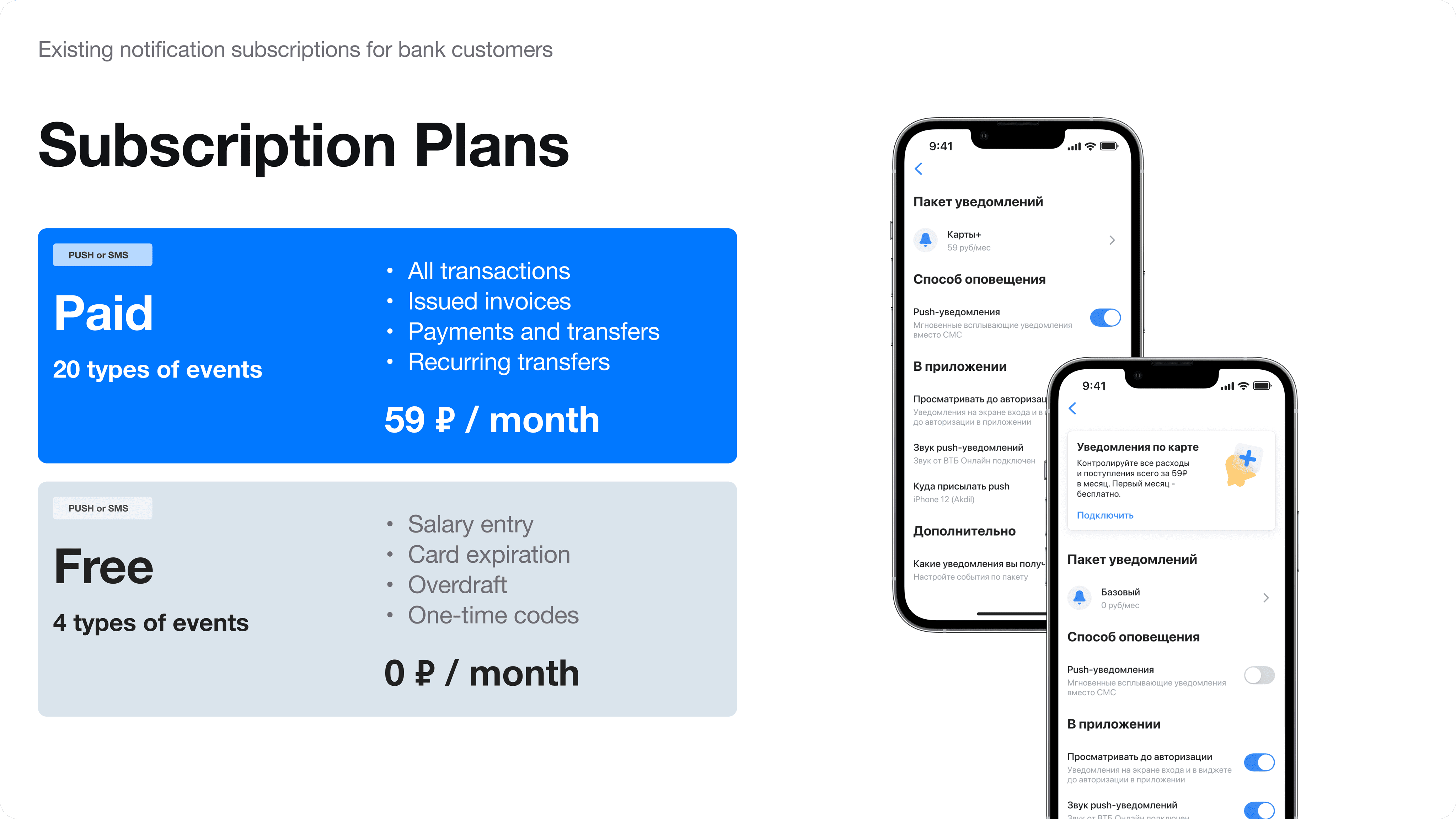 Banking notifications is a service that Russian banks sell to their clients. Usually bank allows few types of notifications for free, however if you want to get access to all of available notifications, you need to purchase a monthly subscription.