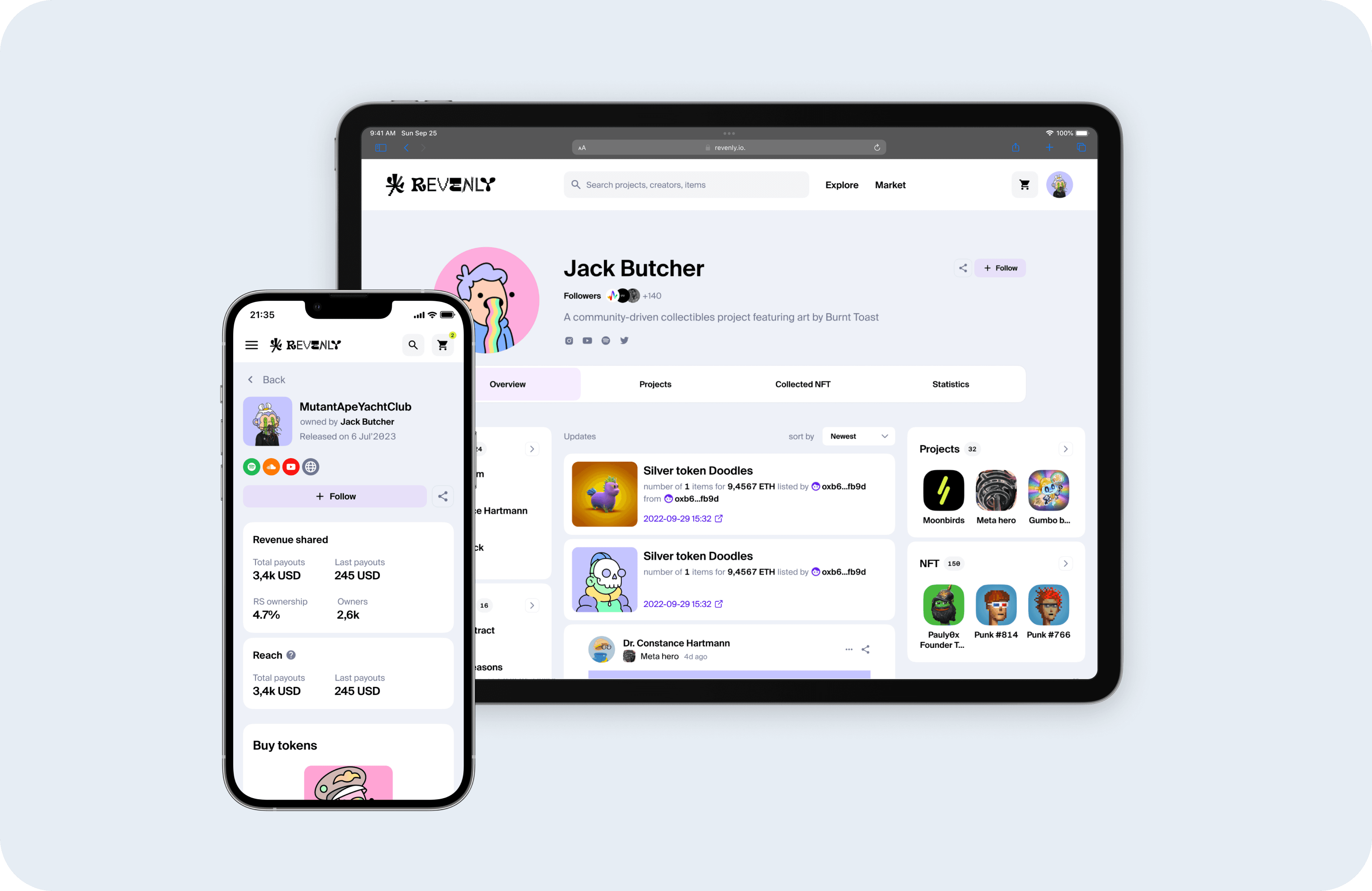 Revenly is a blockchain platform where investors invest money in established web3 creators who have credibility. Investors receive interest for their activities. Creators get financial support for their brand.