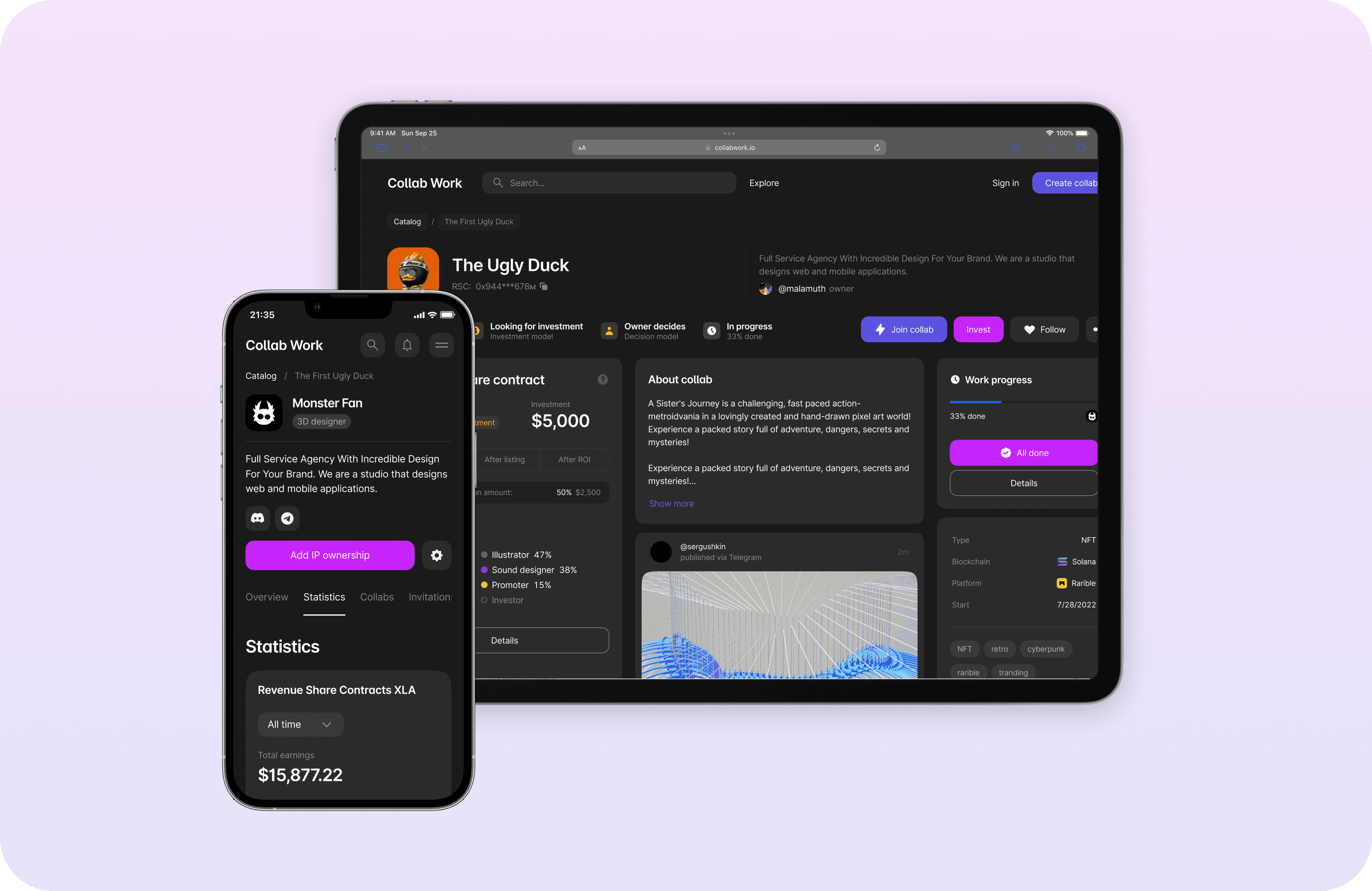 A platform for recruiting independent teams to create projects, with subsequent division of revenue between team members by signing a smart contract.